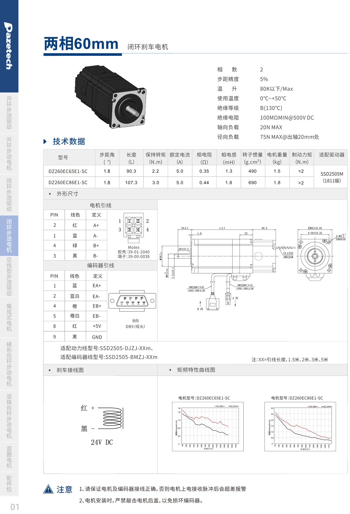 > 60mm两相闭环刹车步进电机