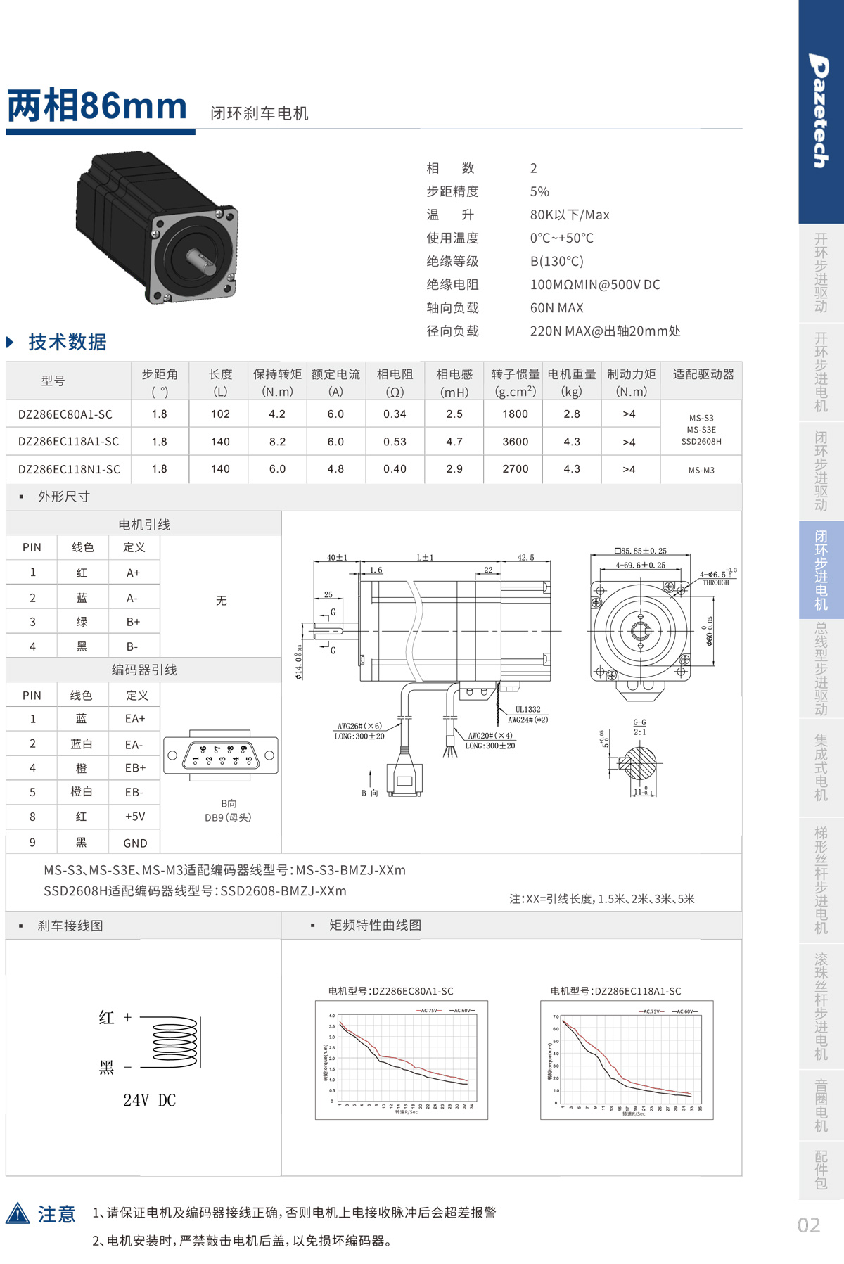 > 86mm两相闭环刹车步进电机